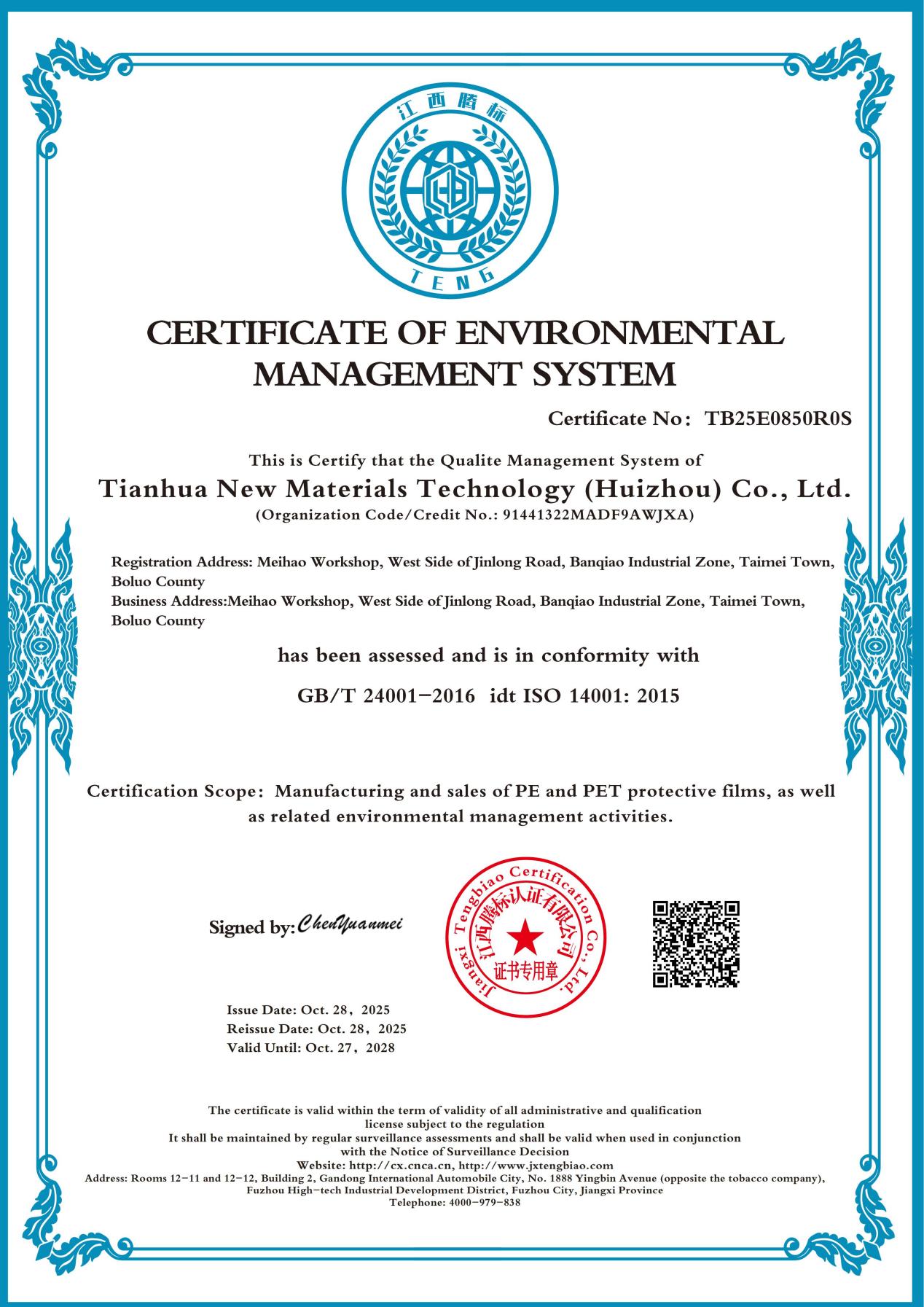 下一篇:惠州天华-环境体系管理体系认证证书