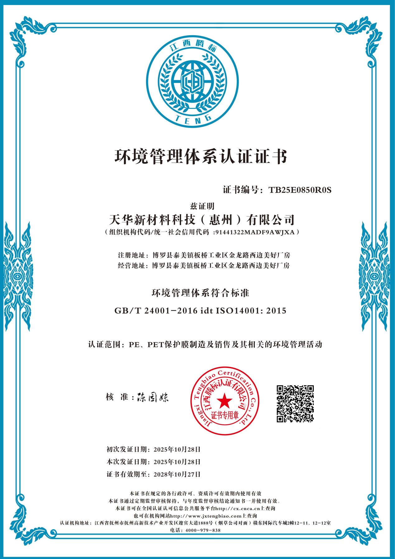 上一篇:惠州天华-环境体系管理体系认证证书(英文版)