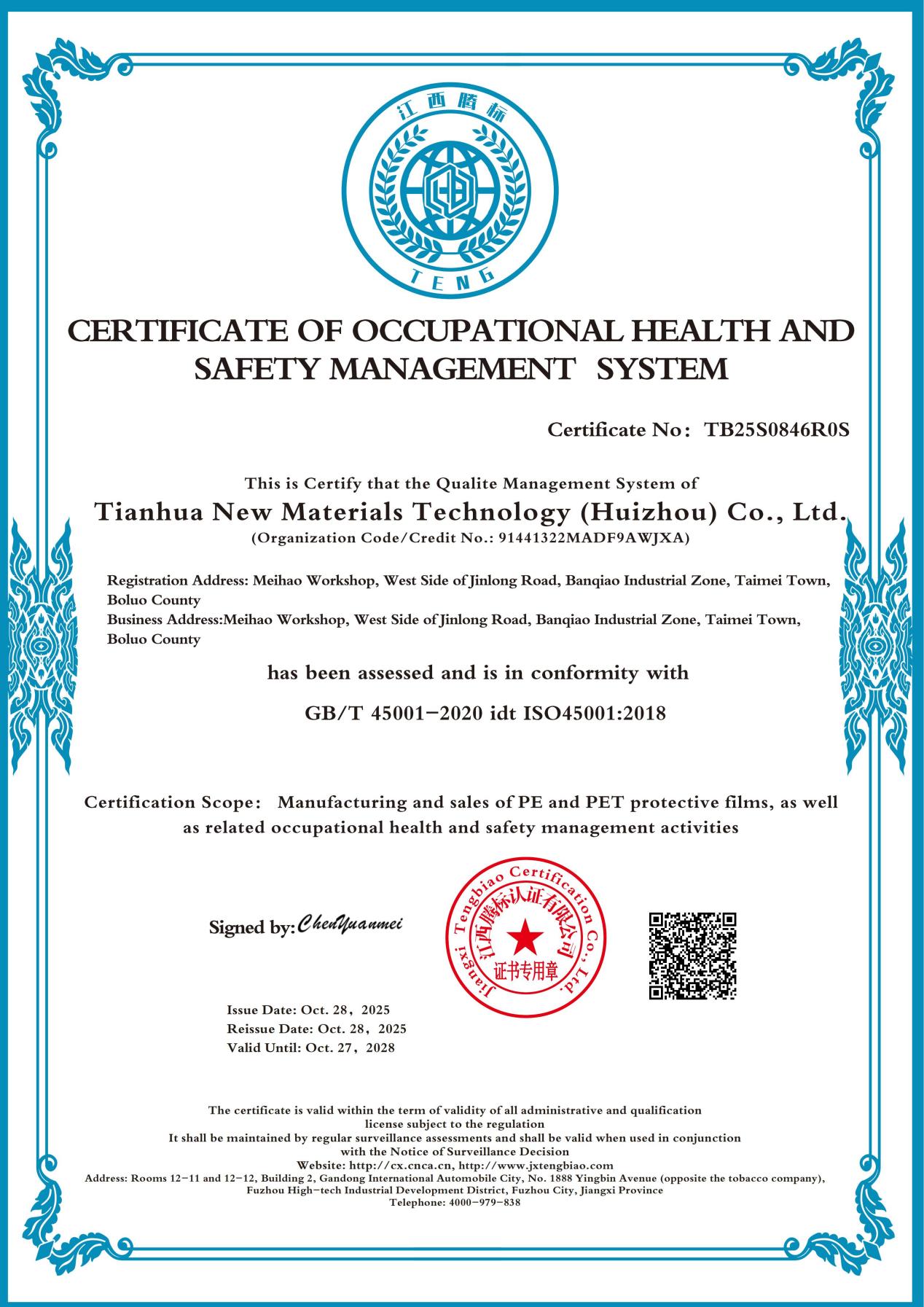 下一篇:惠州天华-职业健康安全管理体系认证证书