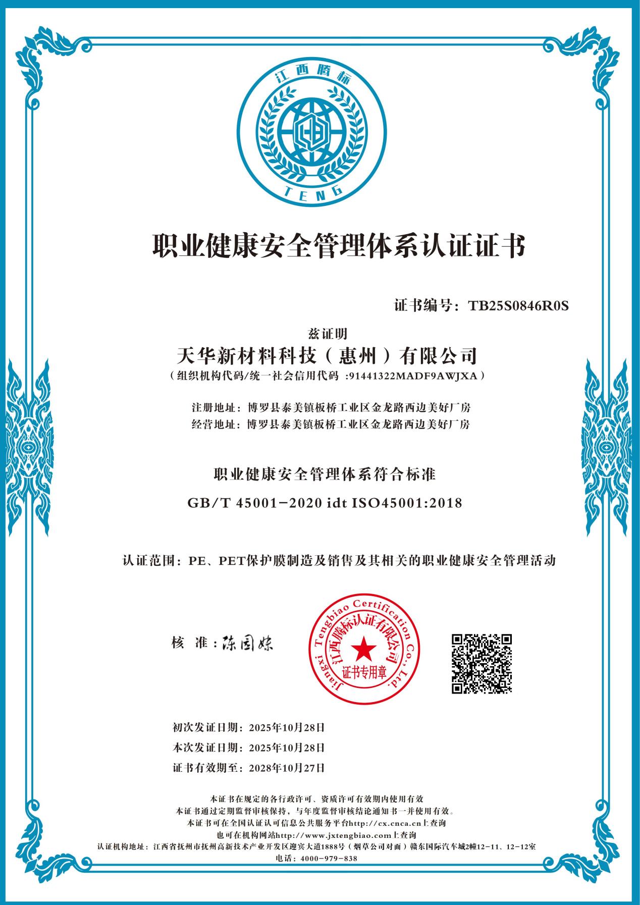 上一篇:惠州天华-职业健康安全管理体系认证证书(英文版)